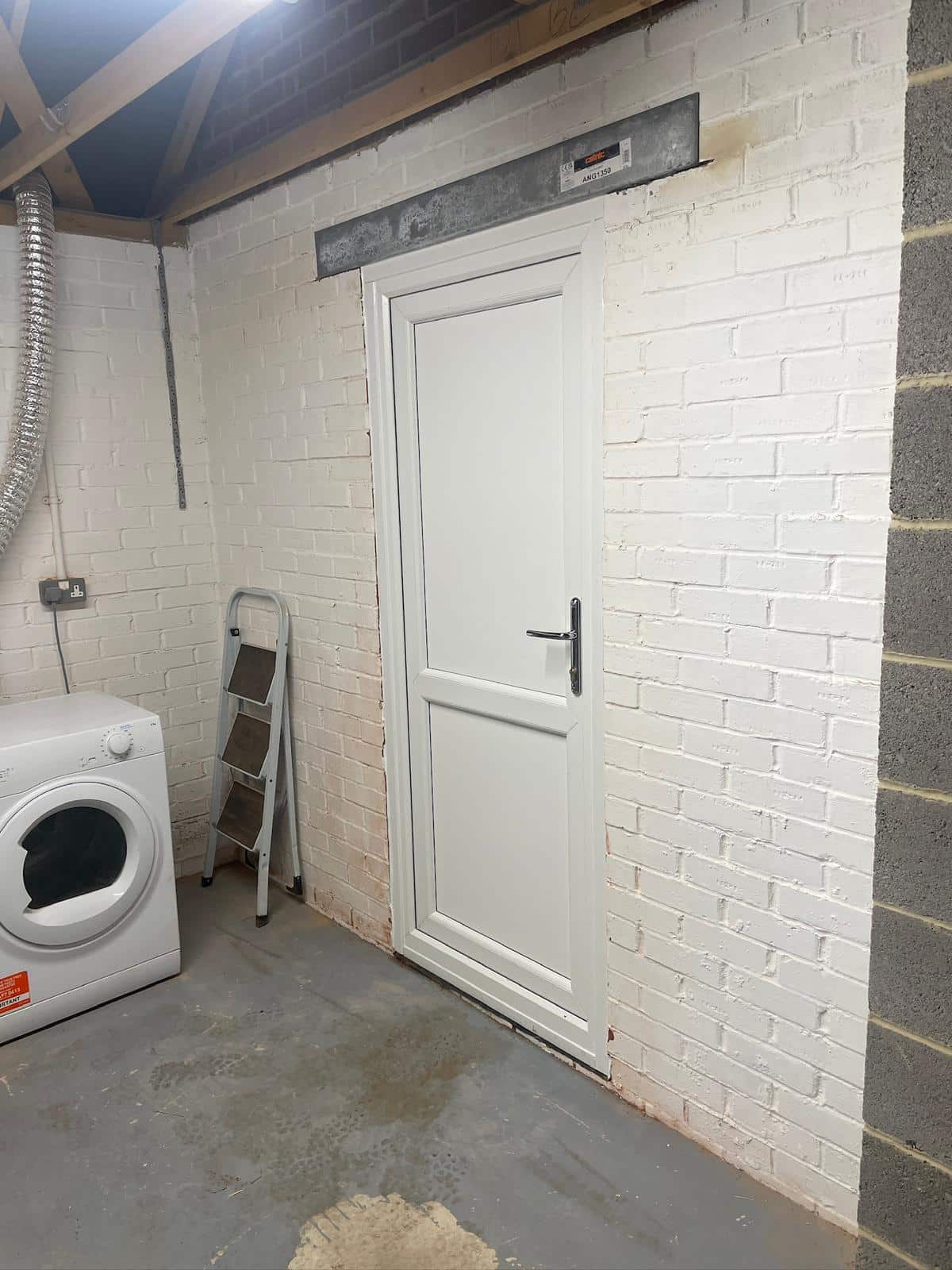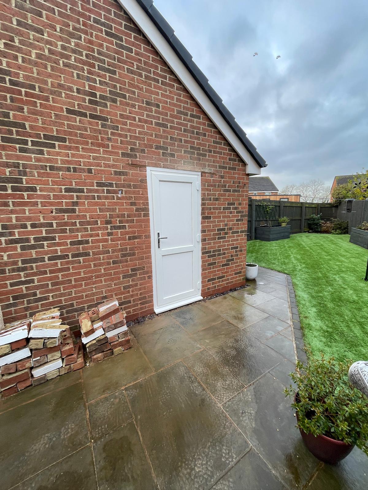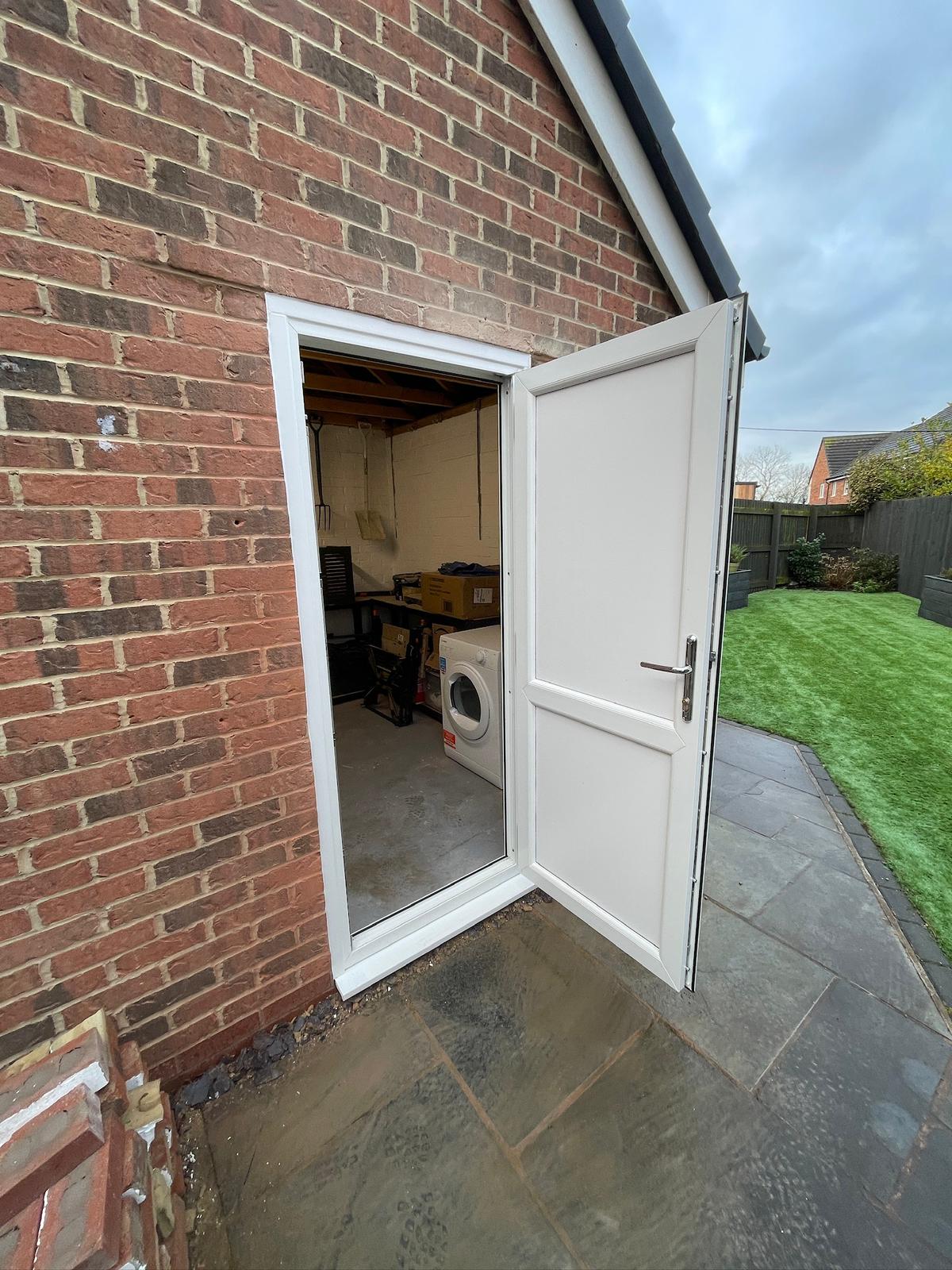 PVCu door installation garage to garden. New build property. Warton Lancashire