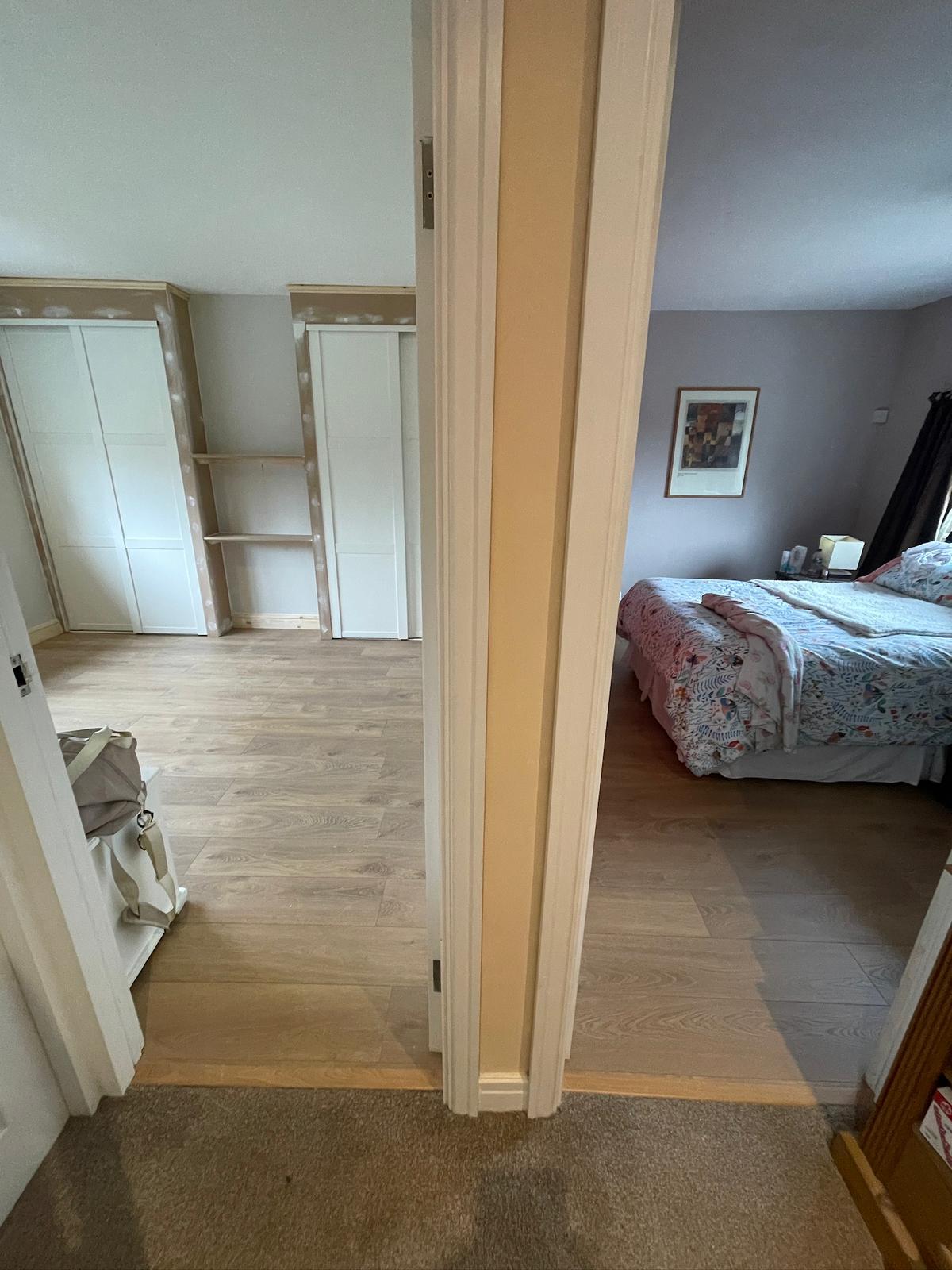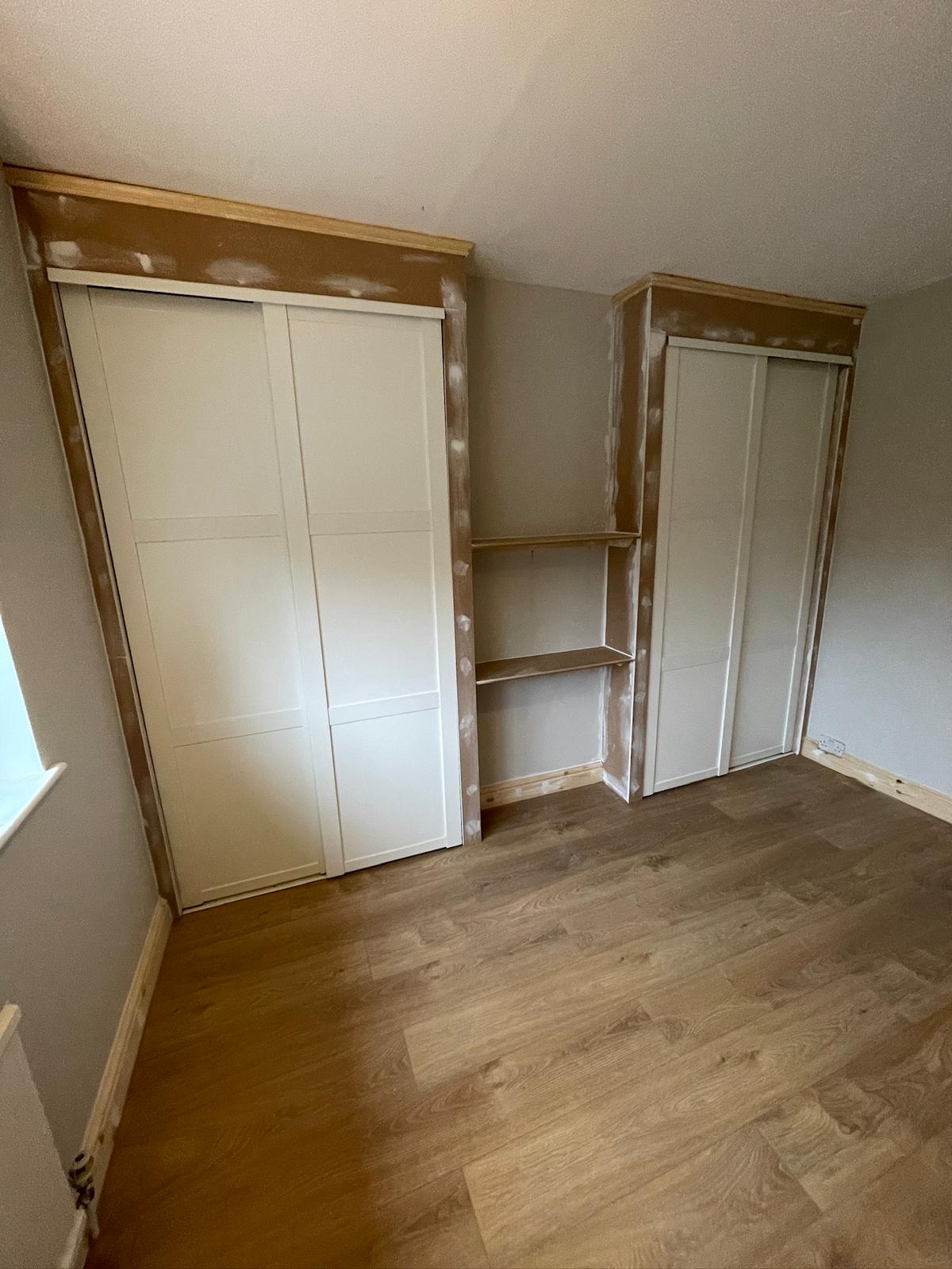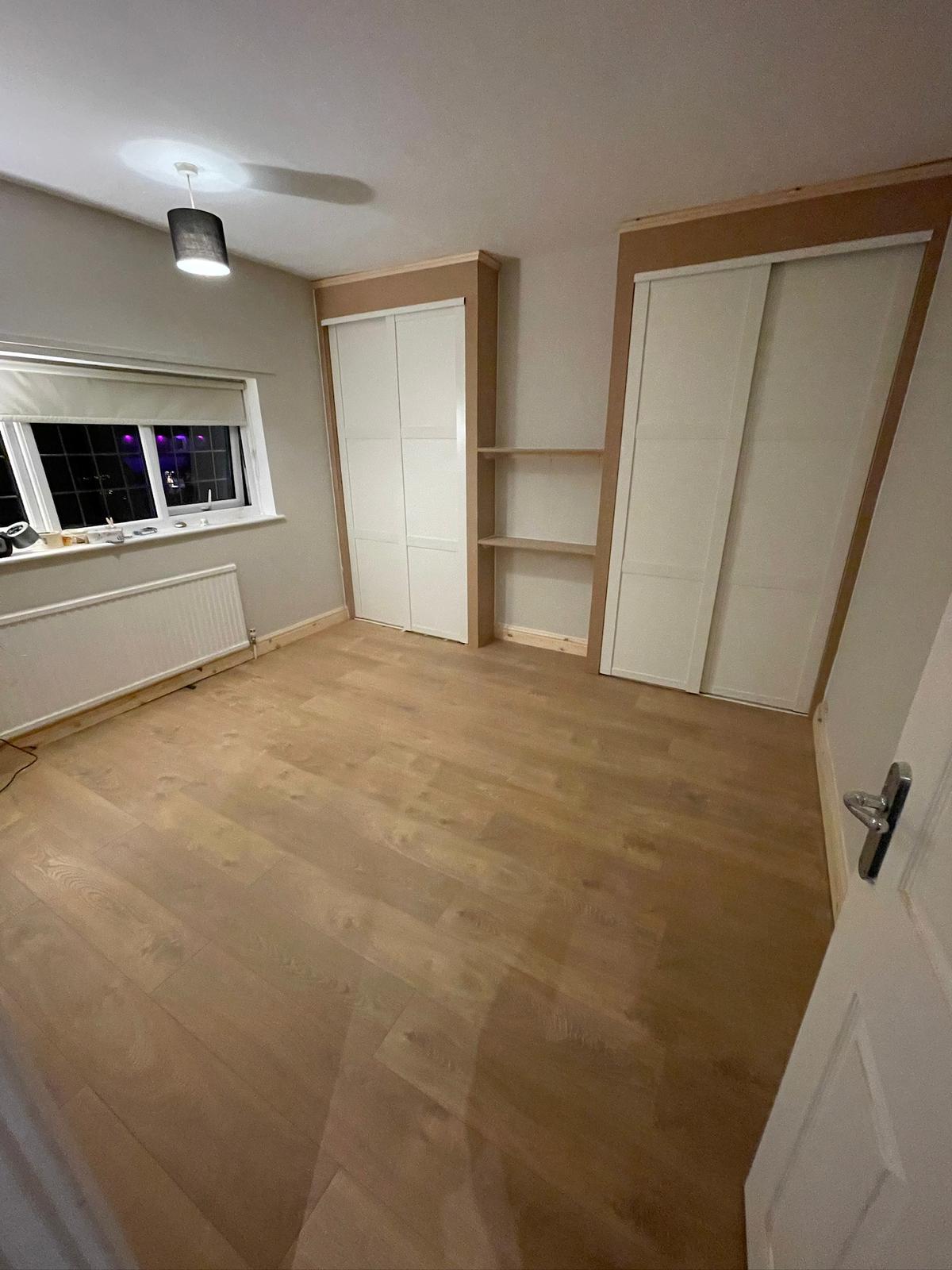 Double sliding wardrobes including new flooring and skirting board’s Preston