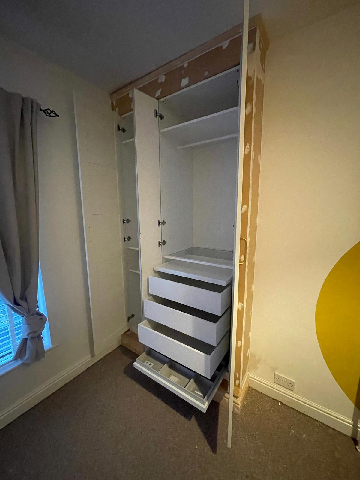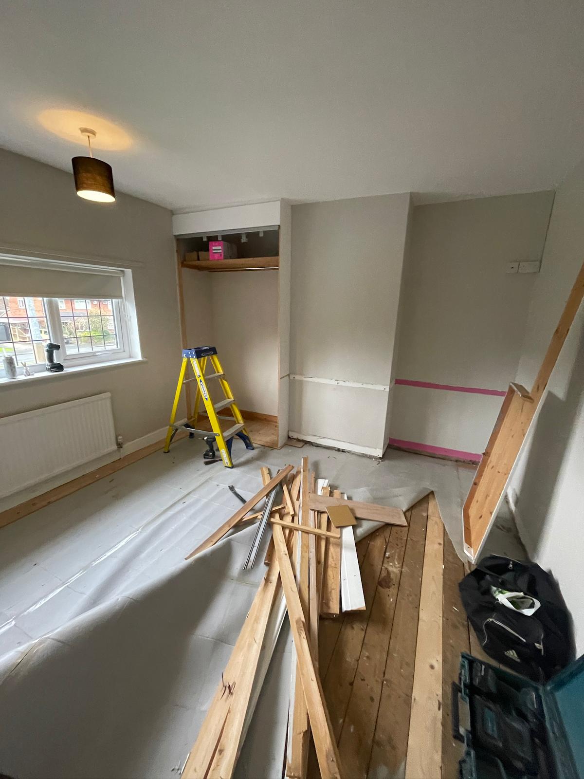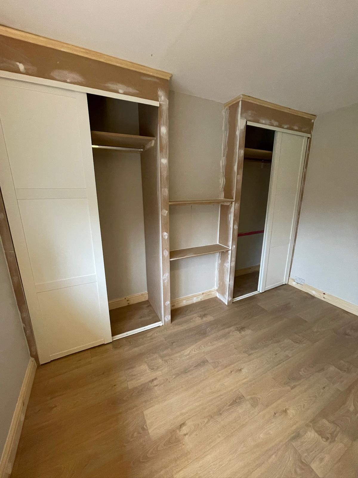 Double sliding wardrobes including new flooring and skirting board’s Preston